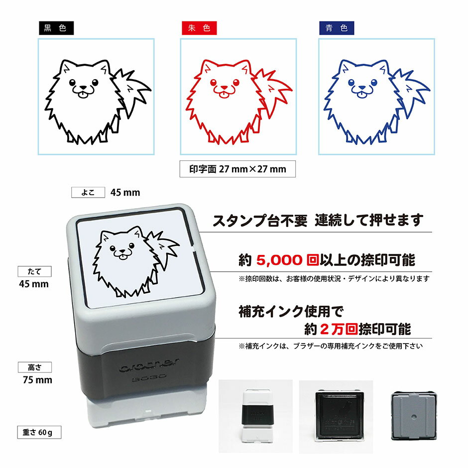 メーカー プラザ—工業株式会社販売者 クライン〒431-1103静岡県浜松市西区湖東町2877電話番号:053-484-3800ポメラニアン いぬ スタンプ 年賀状 ハンコ かわいい イラスト 浸透印 ブラザー 年賀状 戌年 スタンプ メッセージカードやメモ、お知らせにポン! 来年2018年は戌年です。