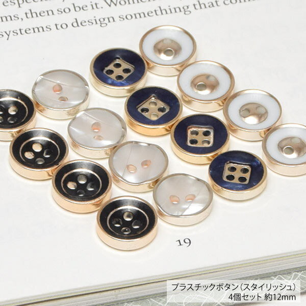 プラスチック ボタン スタイリッシュ 4個セット 約12mm BLAZE